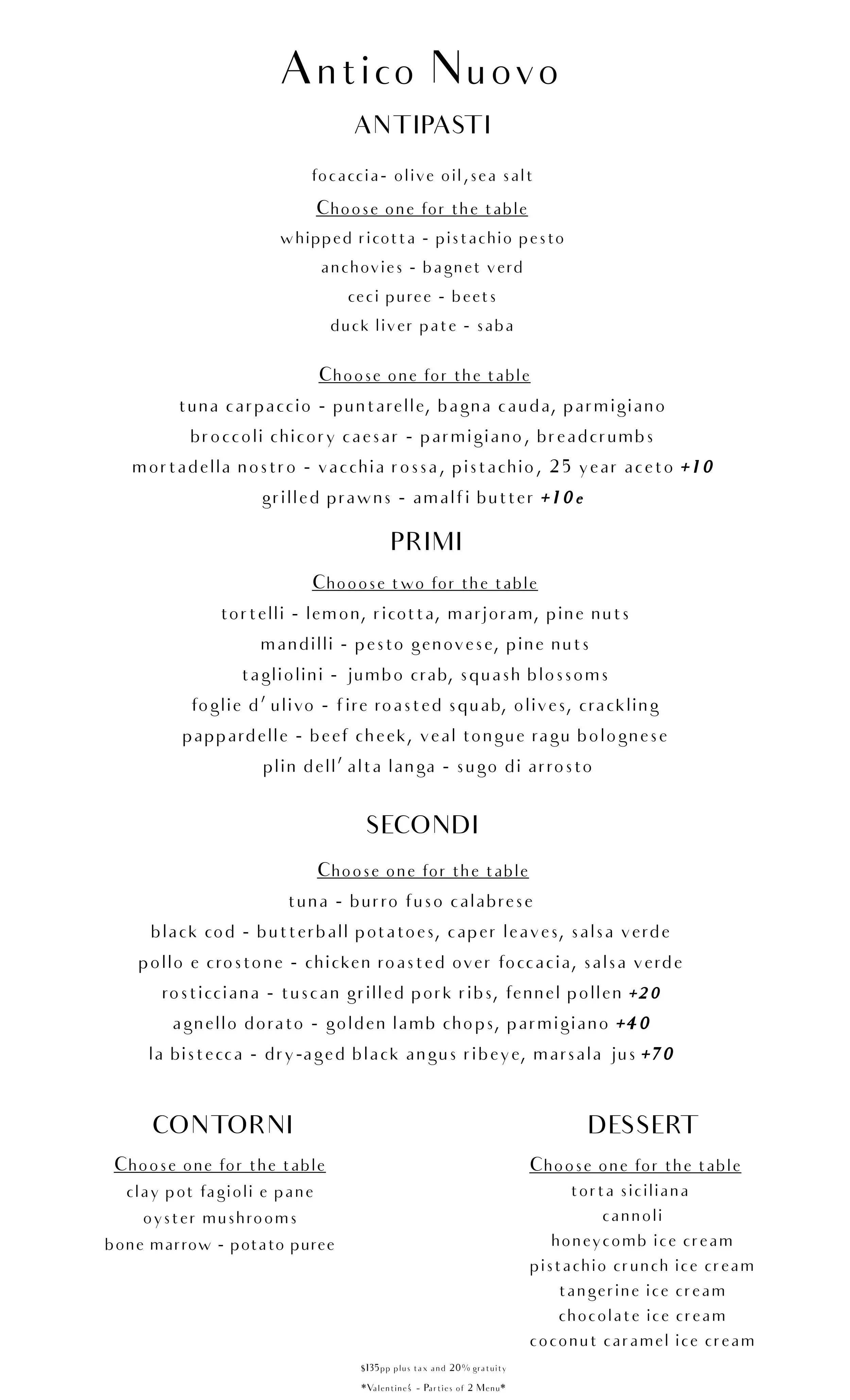 Sample Menus for 2 below. Subject to change due to seasonal availability